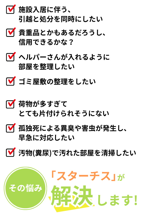不法投棄、貴重品の紛失、物品の粗暴な扱い、見積金額の追加料金は一切いたしません。