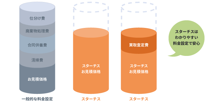 値段の安さ。買取を幅広く対応できるため見積もり金額より差し引きも可能