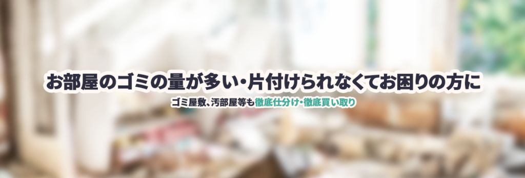 近年問題になっているゴミ屋敷、汚部屋等も徹底仕分け・徹底買い取りで費用を抑えます。