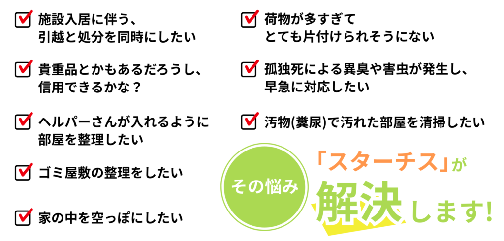 片付けと同時に、施設等へのお引越しにも対応しております。